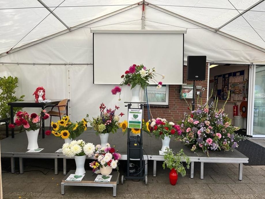 Jaarlijks worden de basisscholen met het Groene Hart uitgenodigd om een werkstuk te maken die we tijdens de Kennemer Bloemendagen tentoonstellen in de grote zaal van d'Evelaer of in de grote tent voor het gebouw.