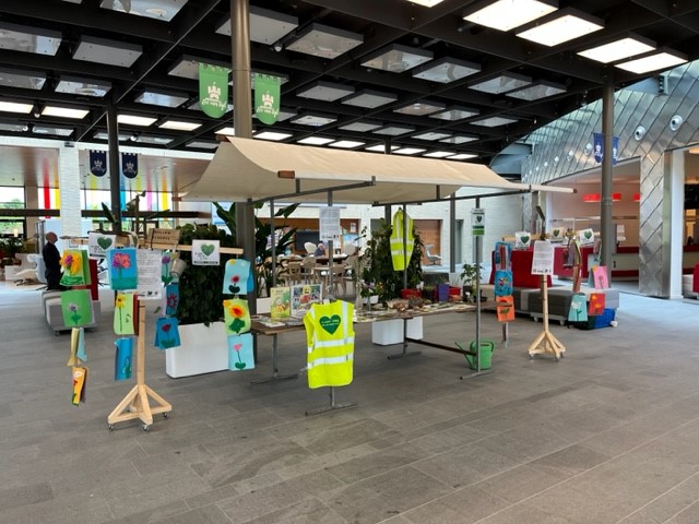 Jaarlijks worden de basisscholen met het Groene Hart uitgenodigd om een werkstuk te maken die we tijdens de Kennemer Bloemendagen tentoonstellen in de grote zaal van d'Evelaer of in de grote tent voor het gebouw.